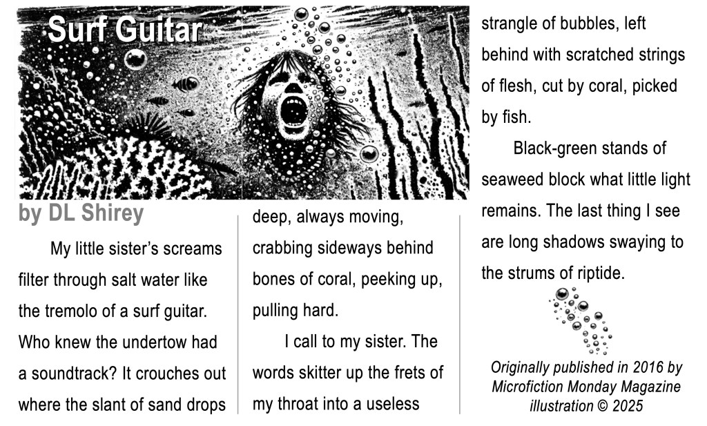 Illustrated Monday Microfiction Posted on February 3, 2025 by DL Shirey in Illustrated About the original story. Instagram reel version here. Share this: Click to share on X (Opens in new window) X Click to share on Facebook (Opens in new window) Facebook Like Loading...