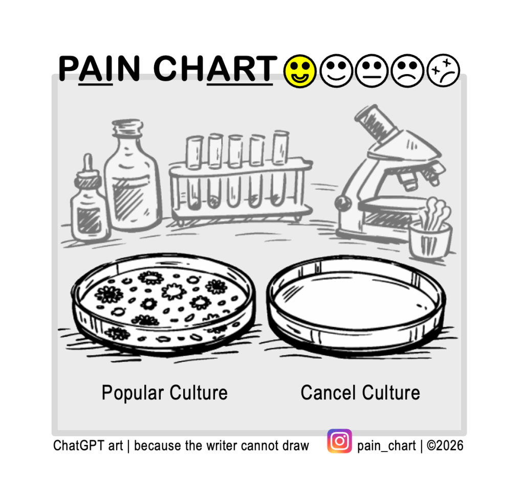 Pain Chart Culture Wars Posted on March 16, 2026 by DL Shirey in Pain Chart #804 | about | more Share this: Share on X (Opens in new window) X Share on Facebook (Opens in new window) Facebook Like Loading...