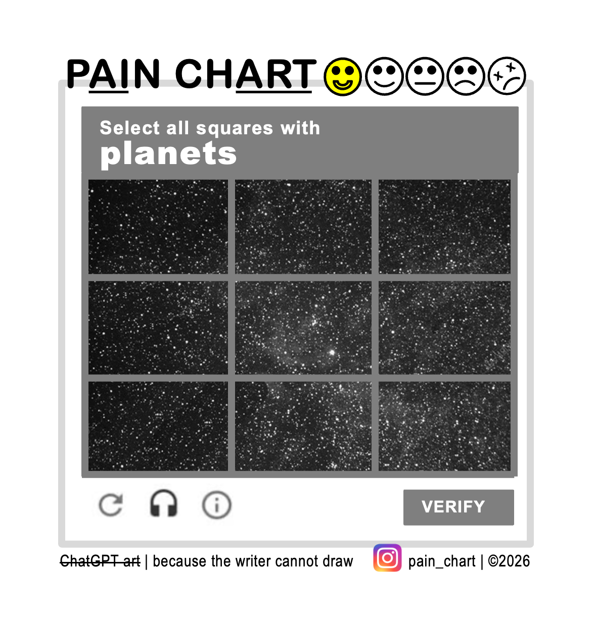 Pain Chart CAPTCHA This! Posted on April 3, 2026 by DL Shirey in Pain Chart #822 | about | more Share this: Share on X (Opens in new window) X Share on Facebook (Opens in new window) Facebook Like Loading...