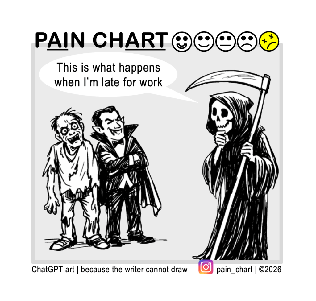 Pain Chart This comic is grim Posted on April 17, 2026April 14, 2026 by DL Shirey in Pain Chart #836 | about | more Share this: Share on X (Opens in new window) X Share on Facebook (Opens in new window) Facebook Like Loading...