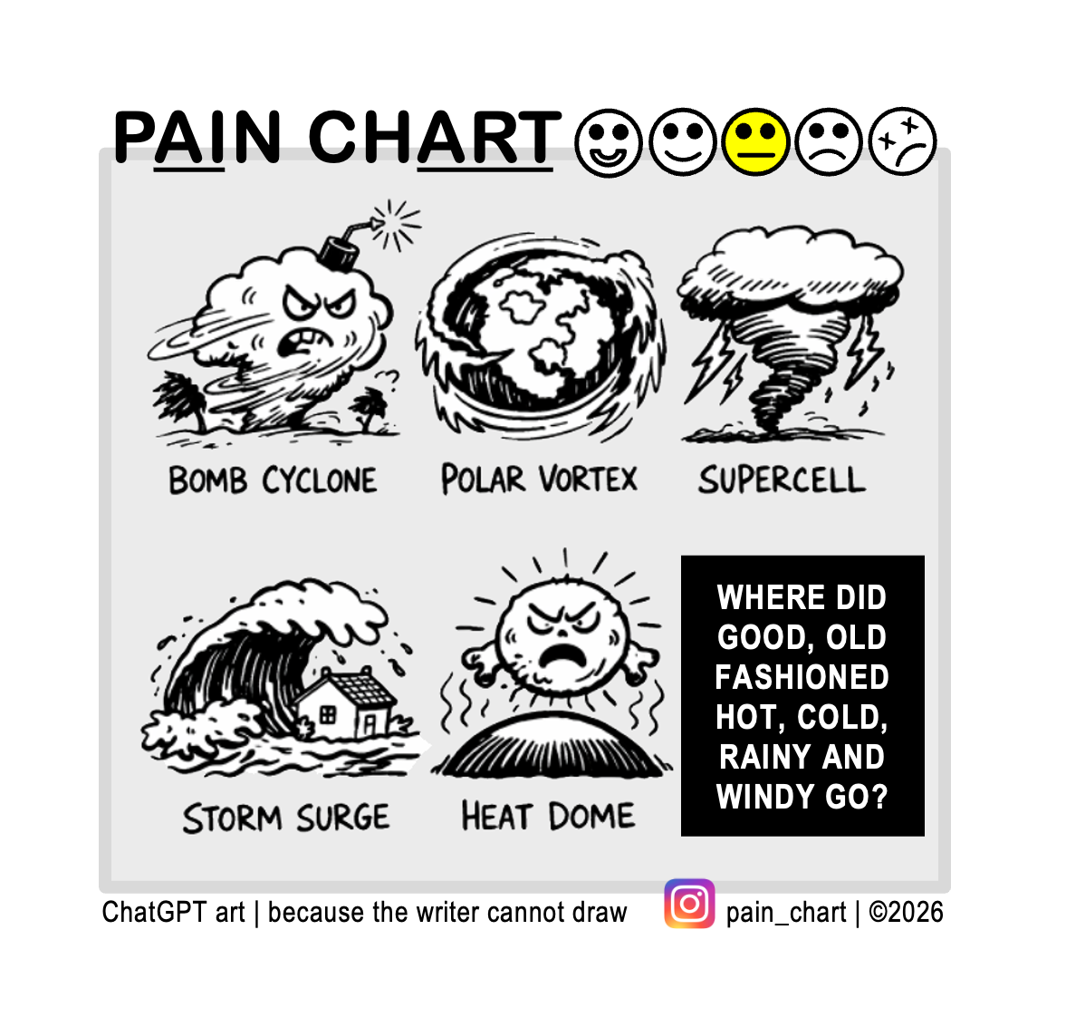 Pain Chart Weather or Not Posted on April 25, 2026 by DL Shirey in Pain Chart #844 | about | more Share this: Share on X (Opens in new window) X Share on Facebook (Opens in new window) Facebook Like Loading...