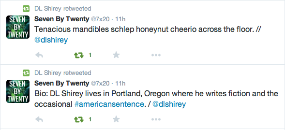Another American Sentence published, this time in Seven by Twenty. Visit them for your very very very short literature needs.